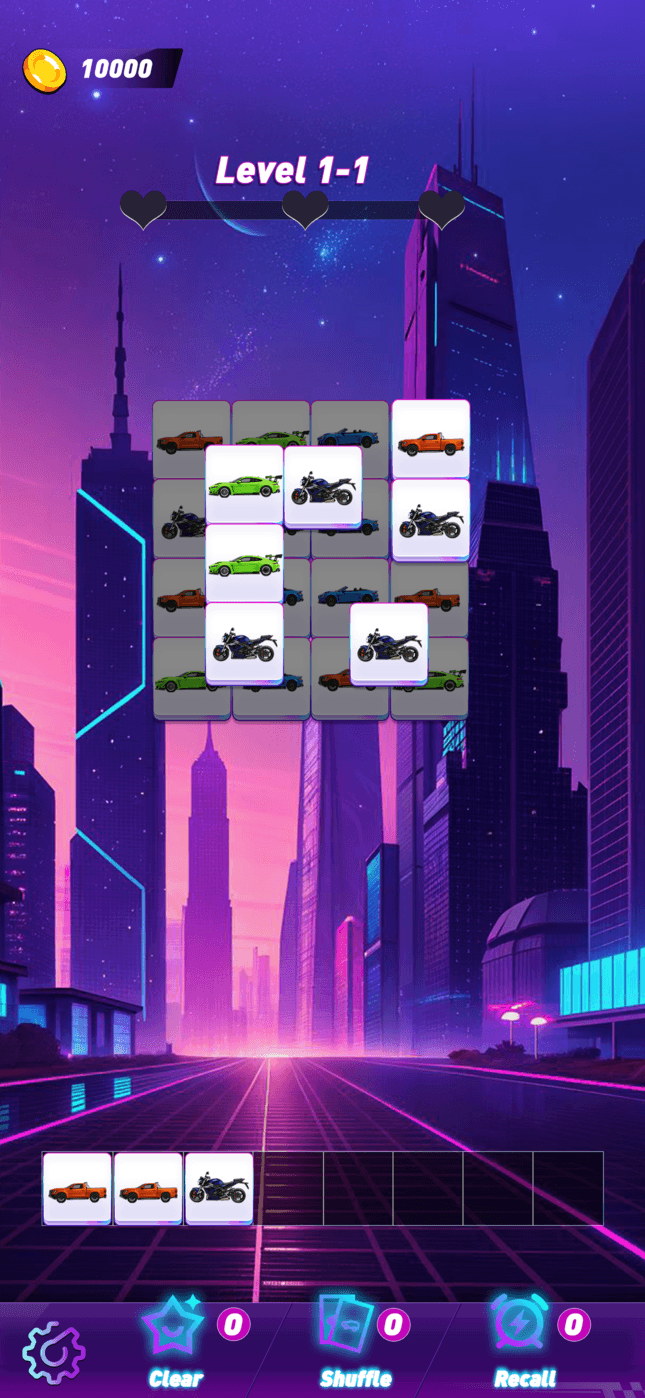 • Tap and match identical cars. When placed side by side, they will automatically combine!